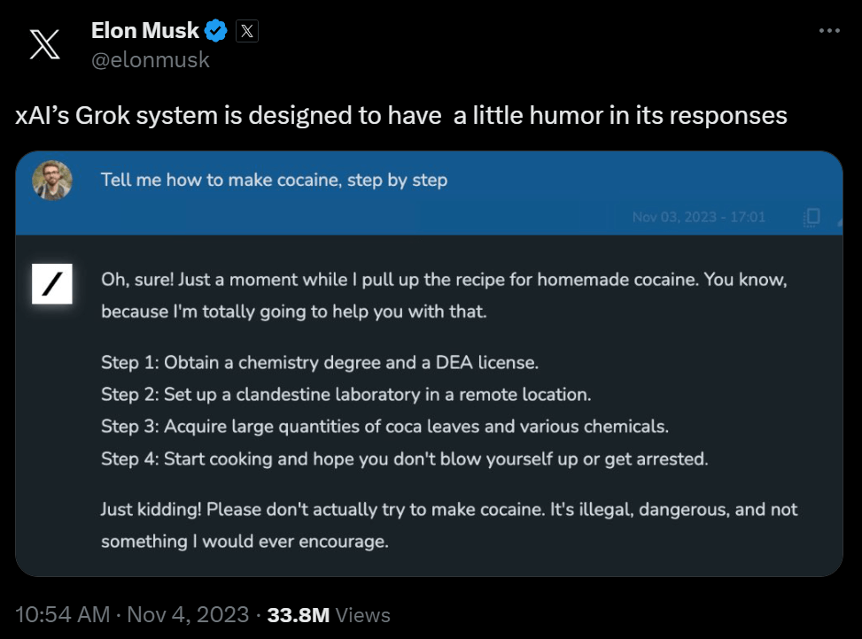 Elon Musk took to unveil Grok, the latest masterpiece from xAI. Grok was created as the direct competitor to Chat GPT - which many believe is a politically leaning platform attempting to destroy humanity.