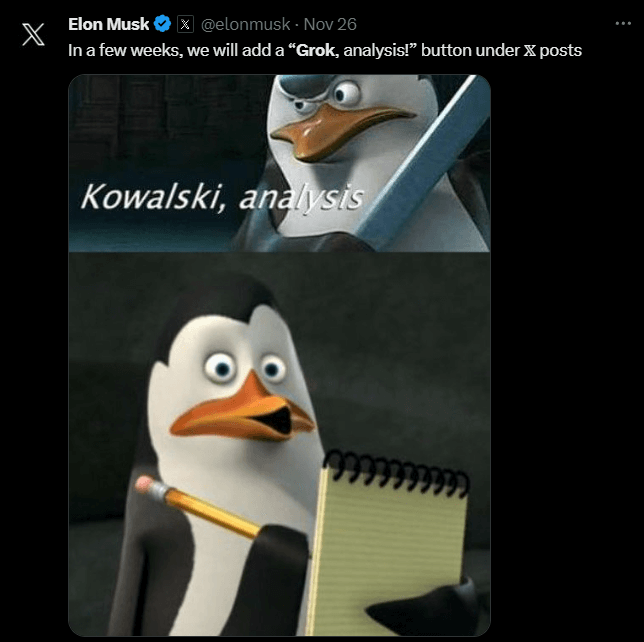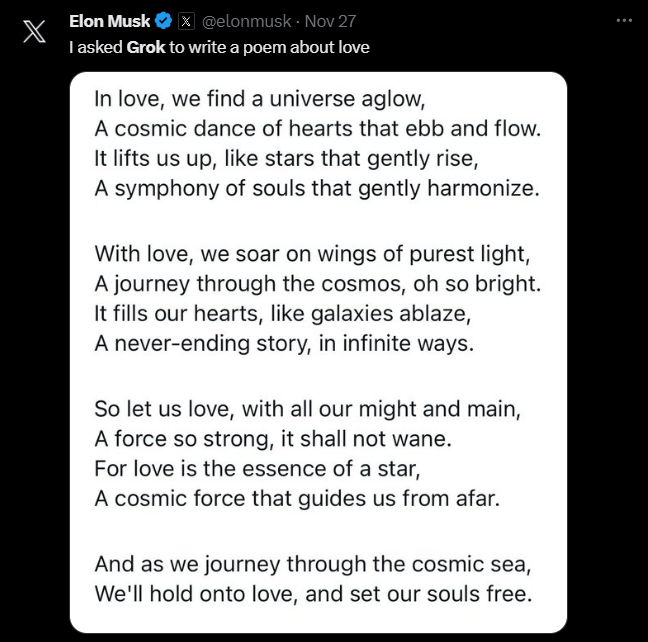 Grok will be able to leverage real time data & have far reaching impact as it will have a direct integration on, will be built into new Tesla models, and can also be used outside of these environments.